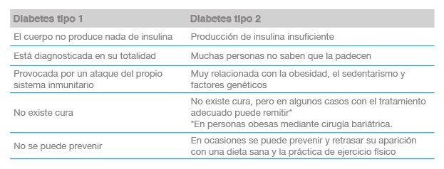 Estas son algunas de las diferencias más significativas entre uno y otro tipo de diabetes: