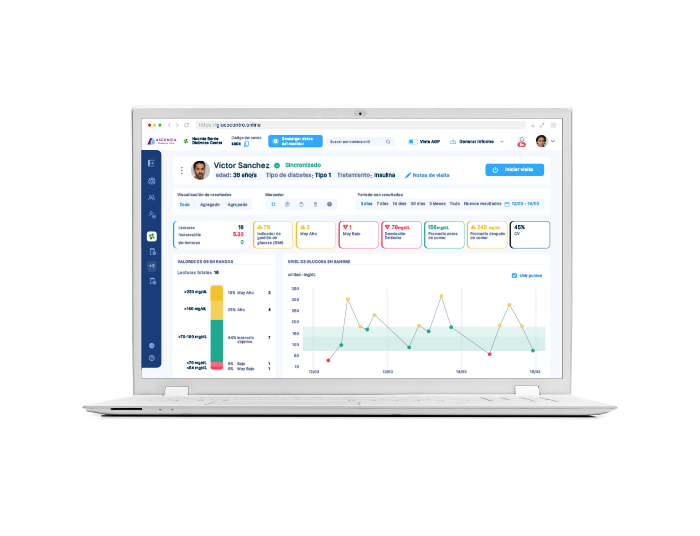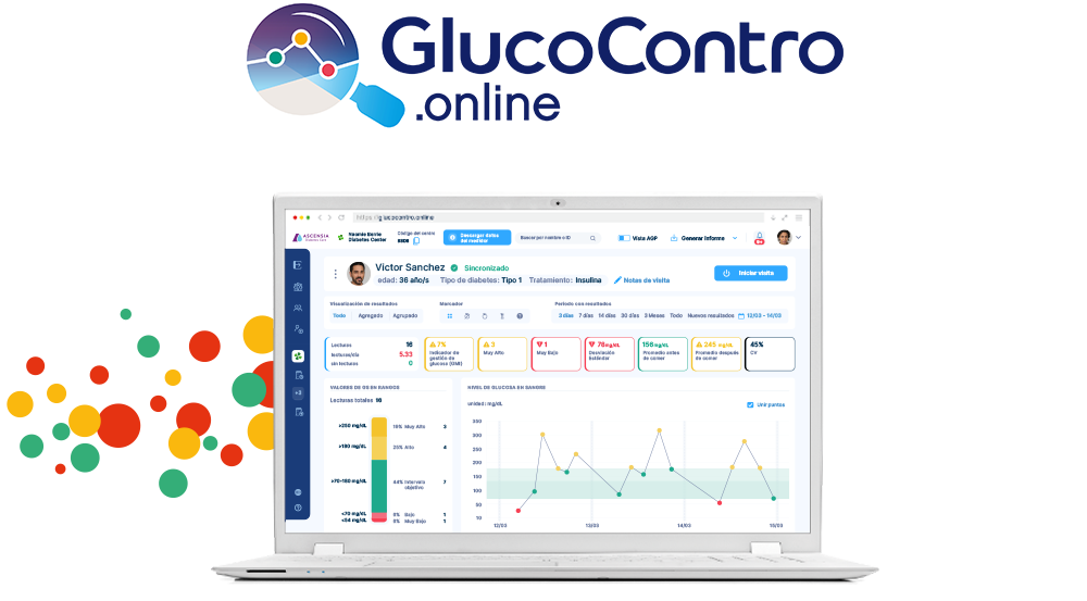 * Los pacientes necesitan estar registrados en GlucoContro.online y aceptar el uso compartido de sus datos con su profesional sanitario.